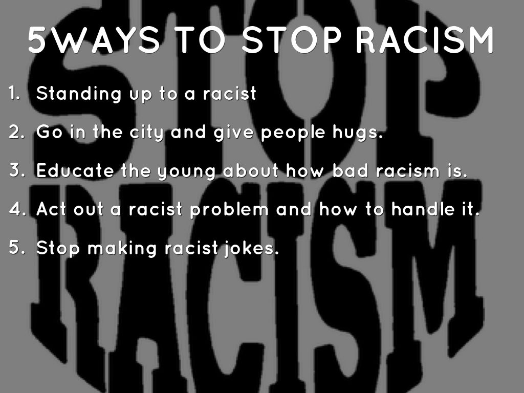 Practical Ways You Can Fight Racism from fthmb.tqn.com People must realize that god created all humans from one couple, thus making the entire human race one large extended family. We must confront it in ourselves, in our communities, and in our nation. But, it turns out, it could be less. We begin to recognize how our work to end racism can bring healing to everyone. If you could how would you end racism ? In reality, racism had just crawled underground. Allot of racism as also turned on mexicans in i don't understand how they can discriminate against their fellow americans, regardless of the colour of their skin. In the end, there will always be those people who don't like it.